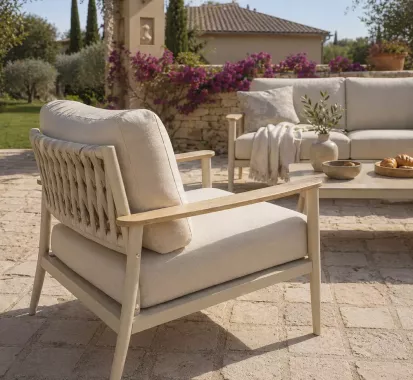 SALON DE JARDIN ALU & CORDE ÉLÉGANCE CRÈME – MALIA