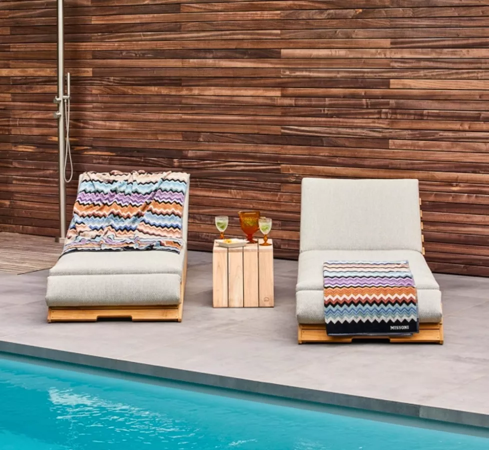 Matériaux : Teck FSC massif et tissu Sunproof® avec mousse à séchage rapide.