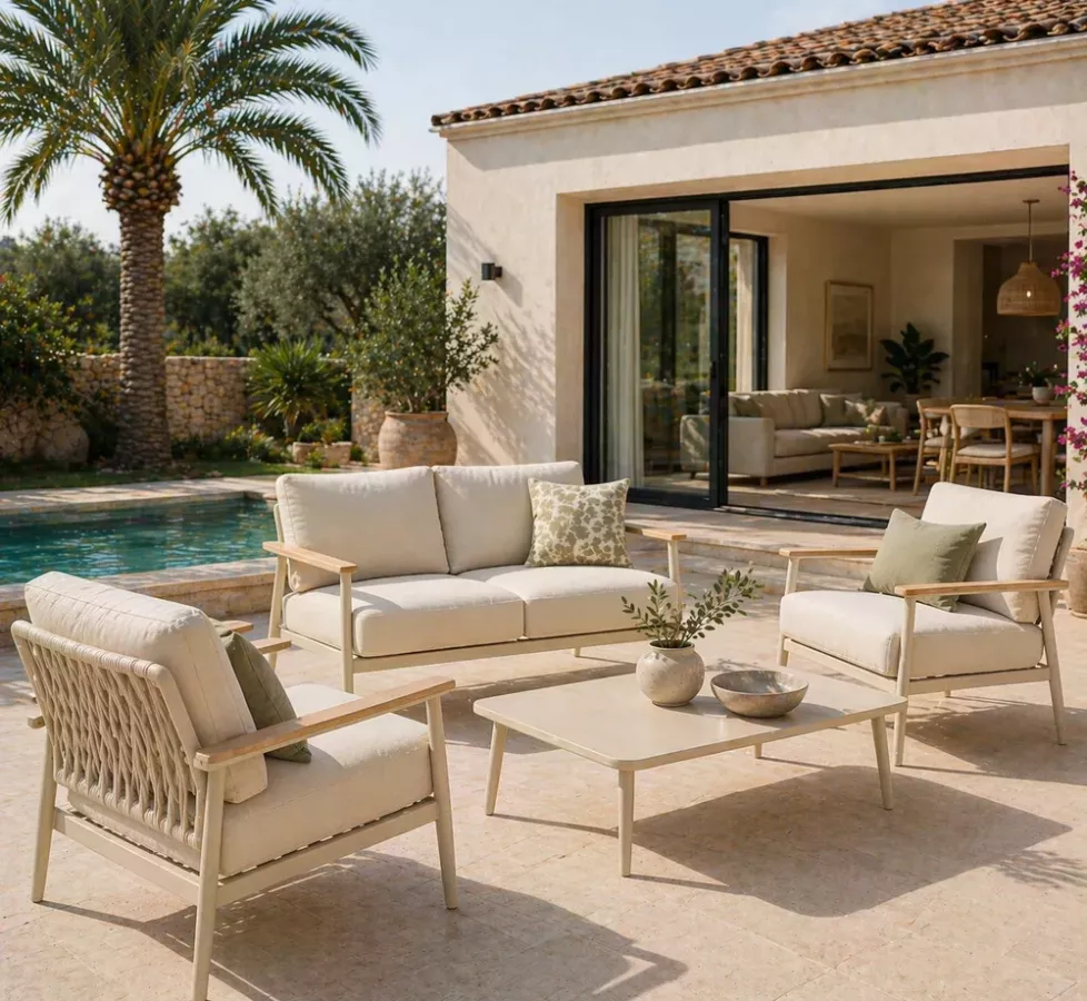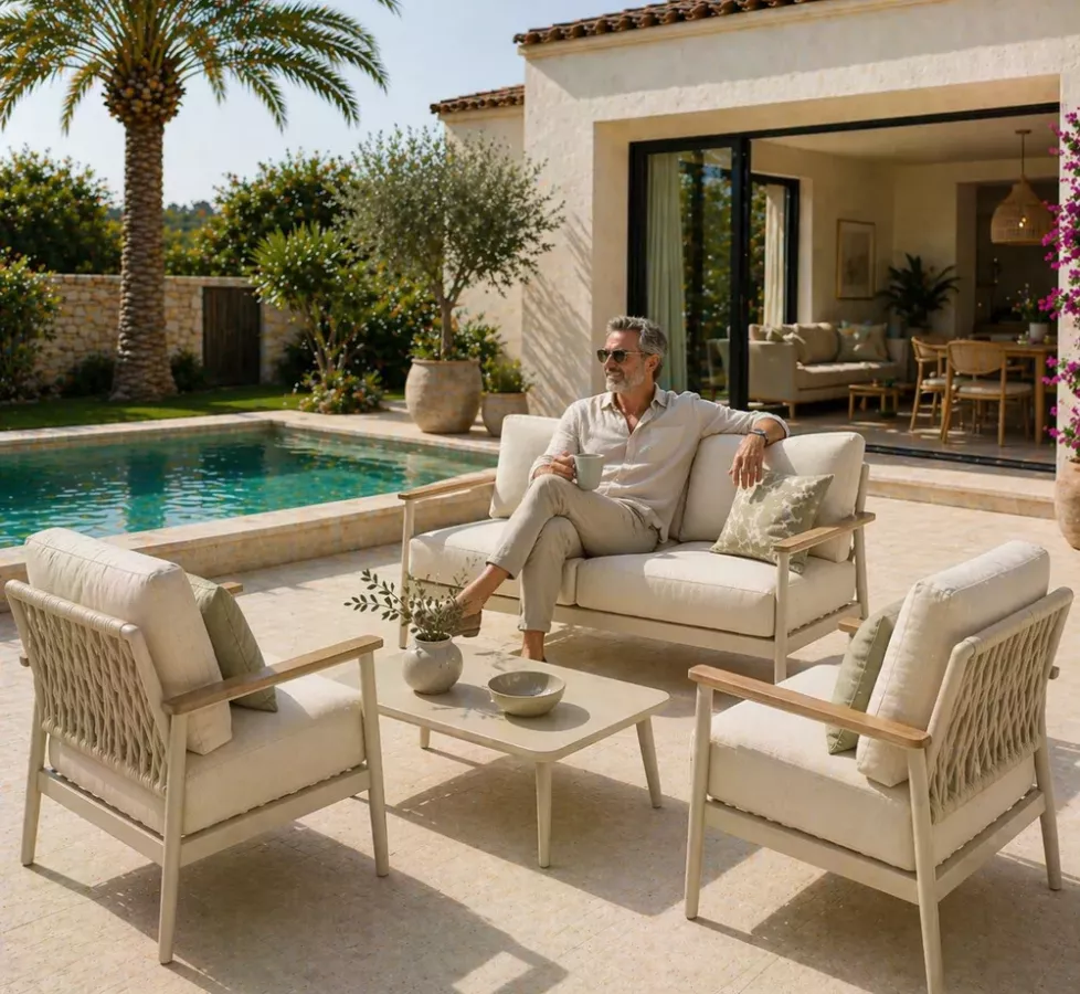 Salon de jardin MALIA – Élégance méditerranéenne sous les tropiques