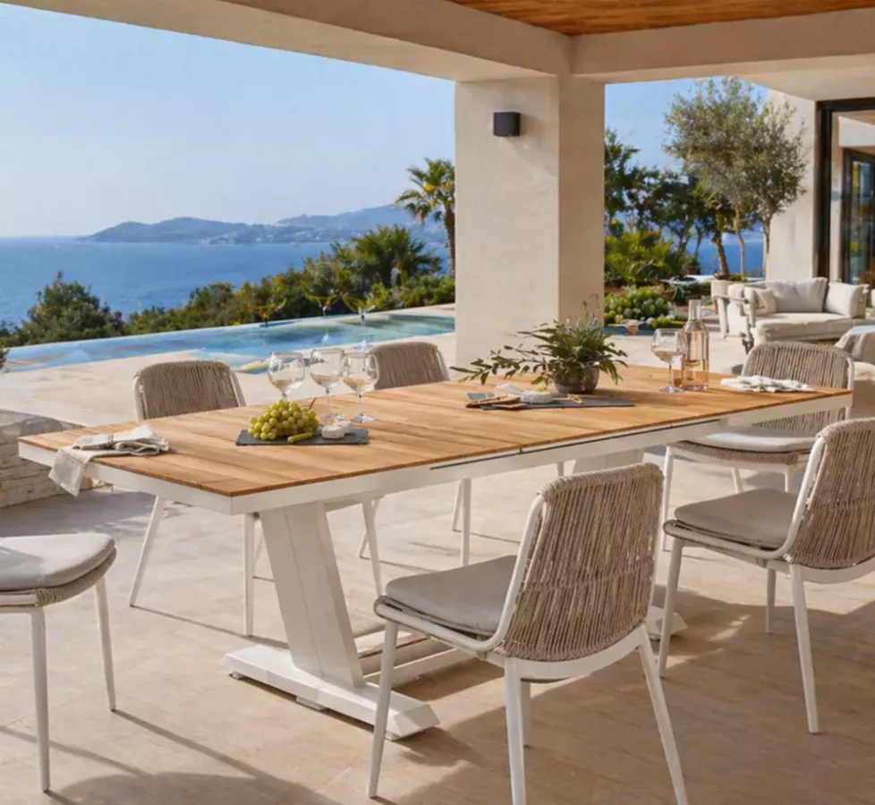 Idéale pour recevoir, table extensible de 8 à 10 personnes à rallonge auto-élévatrice synchronisée, passant de 180 à 240 cm en un geste. Une table de jardin haut de gamme, pensée pour partager des moments de convivialité élégants, avec la livraison et l'installation comprises aux Antilles.